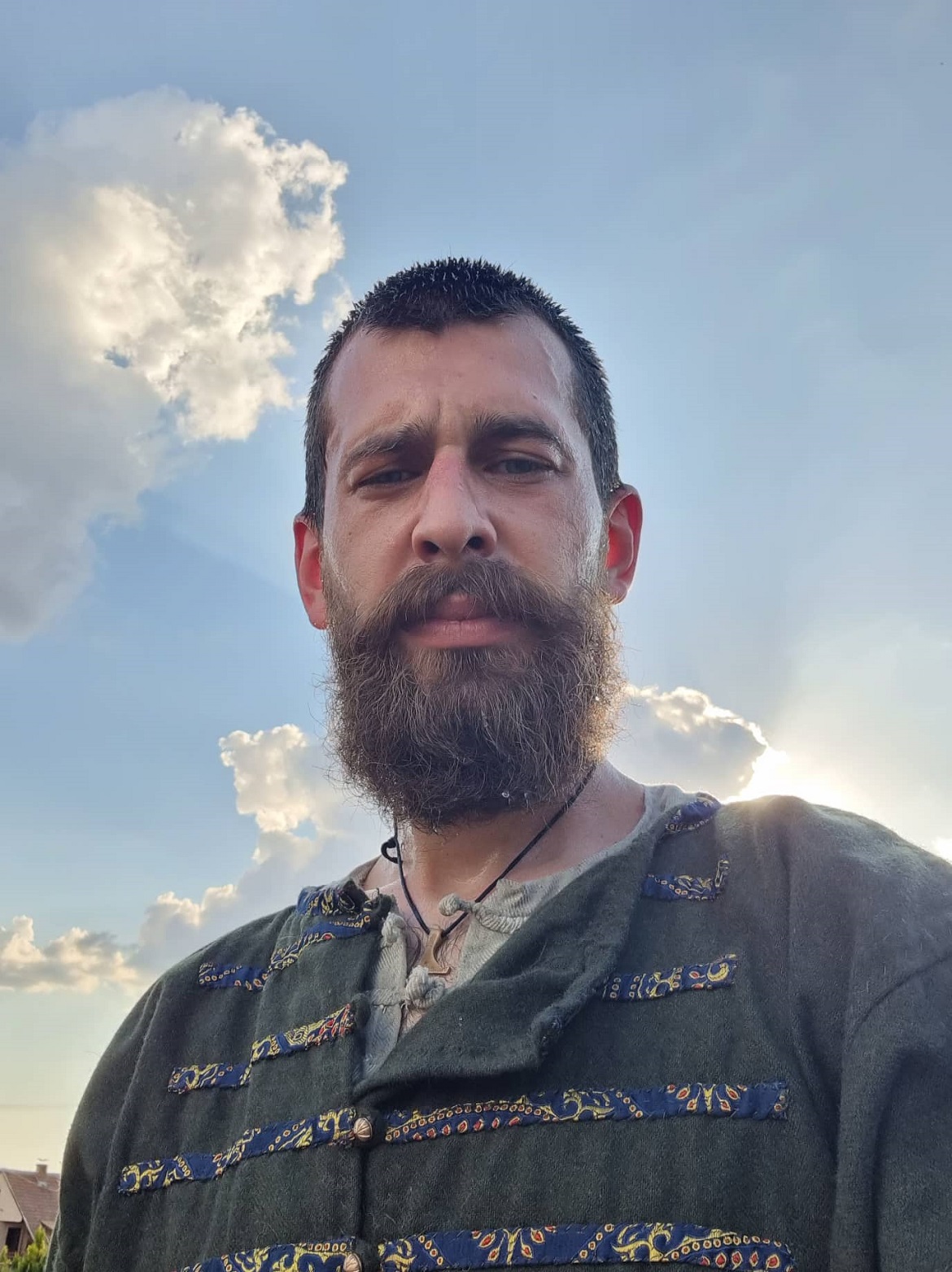 Veres Péter vagyok, de a csapaton belül csak Olaf vagy Olaf jarl. Immáron 3 alapítottam a Carpathian Companionst, és azóta sem mertek leváltani a srácok. Ennyi ideje foglalkozom a nyugati stílusú vívással is. A Kvasir-Kupa az egyik szívügyem a viking falu építése mellett, így boldogan indulok rajta, de túl sok a fiatal és elszánt harcos, majd ellavírozok köztük valahogy vénségem létére a döntőig.